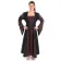 Dieses zweifarbige historische Gewand für die holde Maid verfügt über eine Gugelkapuze, lange Ärmel, Schnürungen vorne und hinten, sowie einen knöchellangen, voluminösen Rock. Das Mittelalterkleid hat lange Trompetenärmel, die typisch für die damalige Adelstracht waren. Des Weiteren weist das Kleid über einen dekorativen Ausschnitt auf, der das Dekolleté schön in Szene setzt. Denn insbesondere ab dem Hochmittelalter wurde die Inszenierung der eigenen Figur populär. Dies äußerte sich zum einen in tiefen Brustausschnitte bei beiden Geschlechtern, was hier auch durch die klaren Linien entlang der Brustpartie realisiert wurde. Zum anderen waren in der Damenbekleidung enge, taillierte Schnitte beliebt. Die neue Silhouette wurde unter anderem durch enge Mieder und Betonung der schmaleren Taille mittels weiter Rocksäume geformt. Genau dies findet sich bei „Liebgart“ durch die integrierten, miederhafte Schnürungen an Vorder- und Rückseite umgesetzt. Ebenso realisiert wurden die Länge der historischen Vorbilder sowie der voluminöse Rock, der in Falten fällt. Jedoch ist der weite Rock nicht nur originalgetreu, sondern garantiert auch uneingeschränkte Bewegungsfreiheit. Die Gugelkapuze mit langem Zipfel war die mittelalterliche Kopfbedeckung für Männer und Frauen schlechthin. Sie wurde als separates Kleidungsstück genauso wie an die Oberbekleidung angenäht, wie hier, getragen. Ferner wurde im Mittelalter stets über dem Untergewand (der hemdähnlichen Cotte oder dem Unterkleid), ein oft ärmelloses Obergewand getragen, wie hier durch die Farbgebung imitiert: das Unterkleid wird durch die farbigen Partien (Leib und Ärmel) und der Surkot, das Überkleid, ist durch die schwarzen Elemente (Seiten, Schnürung und Kapuze) angedeutet. Somit wurde in Farbgebung und Schnitt des Kleides „Liebgart“ die Epochen-spezifische Damentracht bestehend aus Unter- und Obergewand realisiert. Auch kann die genaue Passform des Kleides individuell durch die beiden sich vorne und hinten befindlichen Schnürungen auf jede Passform angepasst werden. Diese Schnürungen stellen darüber hinaus ein weiteres dekoratives Element des Kleides dar. Schließlich liegt in der Farbgebung des Kleides eine weitere Besonderheit vor, die auf die Ära des Mittelalters hinweist. Denn vornehmlich die Bekleidung der adeligen Schichten zeichnete sich im Laufe der Epoche durch immer bunter werdende Oberkleidung aus. Diese Vorliebe für lebhafte Farben mündete schließlich in der Tradition der höfischen 'mi-parti' - Mode, die in der Verwendung von zwei verschiedenen Farben, die senkrecht nebeneinander angeordnet wurden, bestand. Dies finden Sie auch hier durch die zweifarbigen Partien umgesetzt. Überdies finden sich beim Kleid „Liebgart“ keinerlei störende Taschen, Knöpfe und Reißverschlüsse, was neben der flexiblen Passform den hohen Tragekomfort des Kleides ausmacht.
